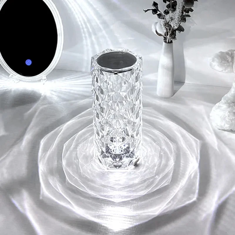 - مصباح طاولة جميل من الكريستال : مصباح الطاولة هذا مصنوع من الكريستال الشفاف ، وهو ليس عمليًا فحسب ، بل زخرفيًا أيضًا.